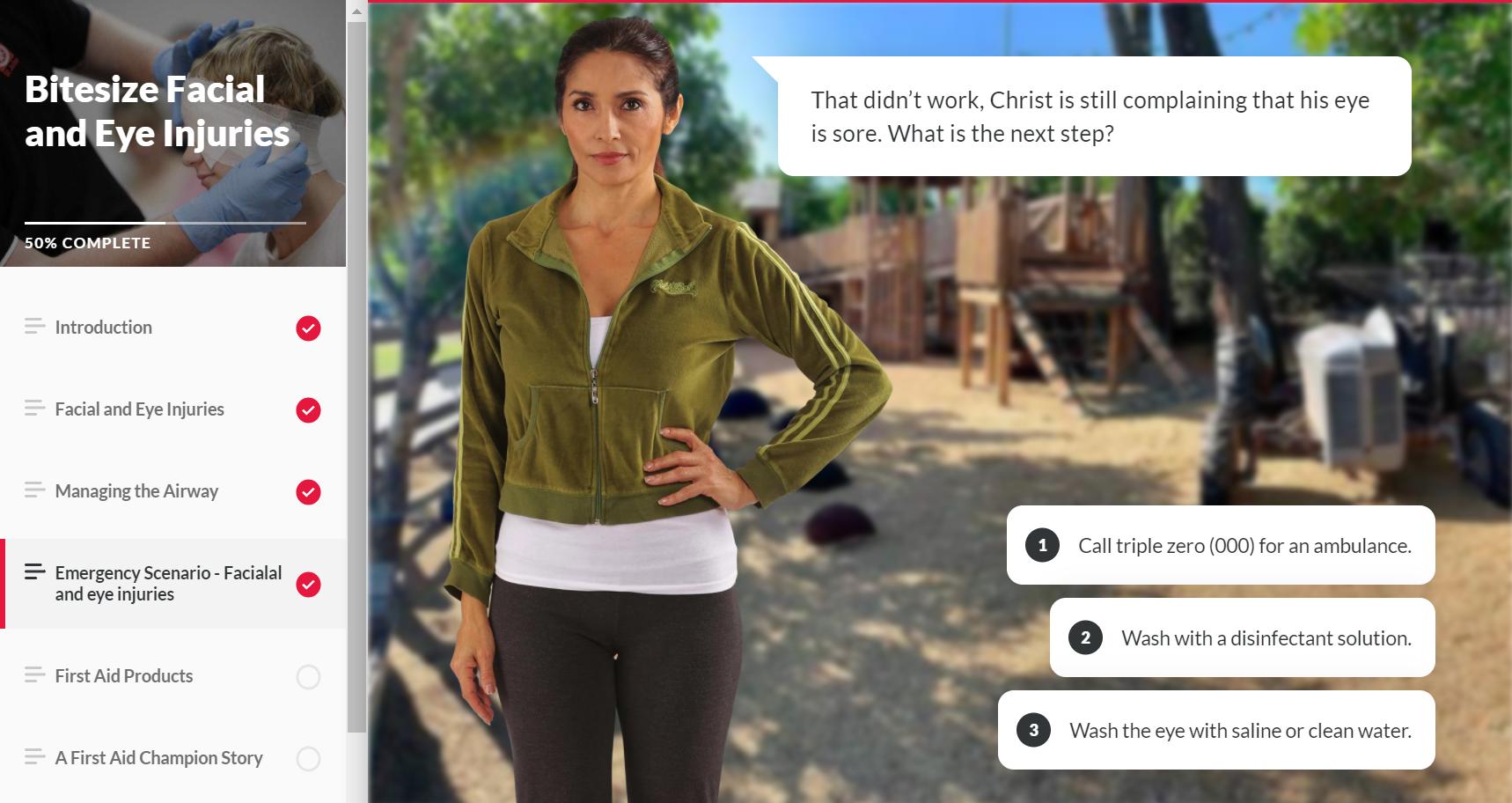 Learn how to successfully provide emergency first aid to a casualty suffering facial or eye injuries in this interactive online course.