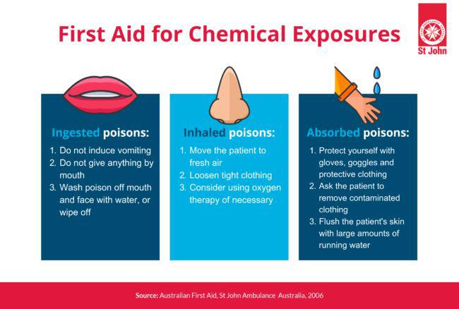 Many dangerous substances can be found in every Australian home. These range from the obvious such as bleach and other heavy-duty cleaning products, to the less obvious such as windscreen washer fluid and air fresheners. This article will take you through some of the most common chemical exposure situations you or your family members might face, and the appropriate first aid responses.