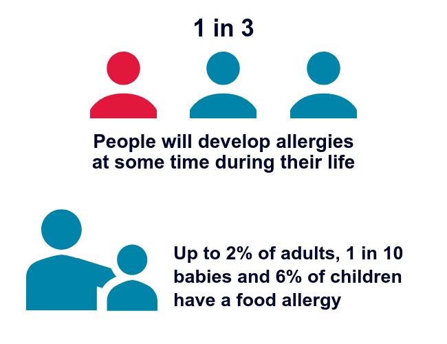In Australia, allergies are very common. Currently around one in three people will develop allergies at some time during their life. It is estimated that up to 2% of adults, 1 in 10 babies and 6% of children have a food allergy and some of them will experience a life-threatening allergic reaction (anaphylaxis).