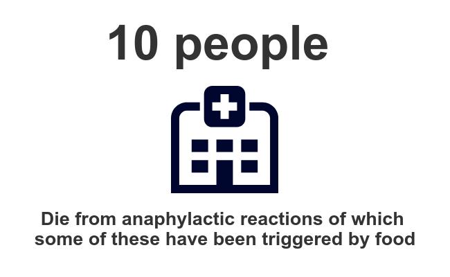 Each year, approximately 10 people die from anaphylactic reactions of which some of these have been triggered by food.
