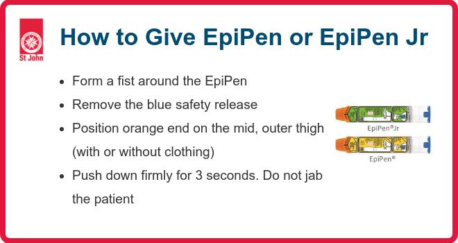 - Carry an adrenaline auto-injector (EpiPen) at all times