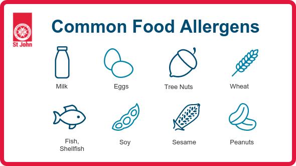 - Food – any food can be a trigger. However, the most common trigger foods that account for about 90 per cent of allergic reactions include seafood (such as lobsters, prawns and crabs), eggs, milk, peanuts, tree nuts (such as almonds, cashews, pecans and walnuts) and sesame or soy products