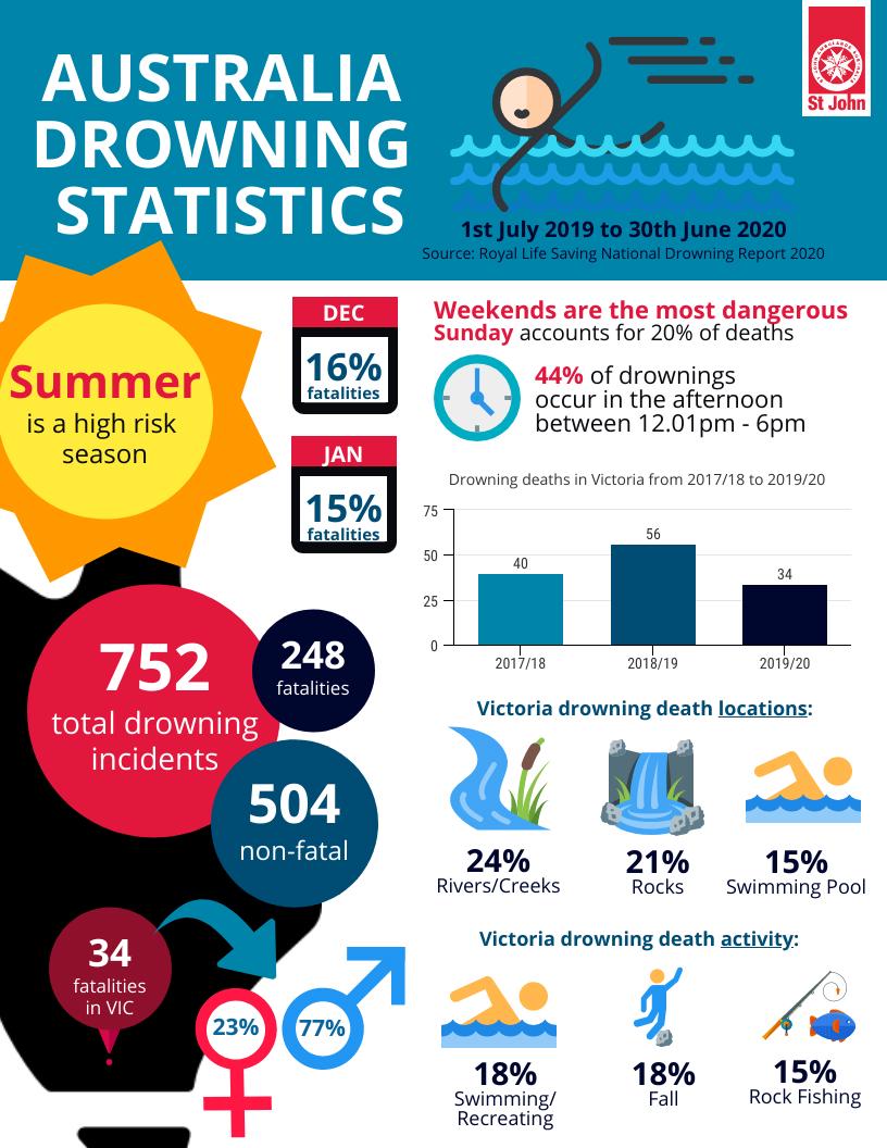 Between July 1, 2019, and June 30, 2020, there were 248 fatalities in Australian waters. Alarmingly, another 504 Australians suffered from non-fatal drowning throughout this time but were thankfully able to be saved.