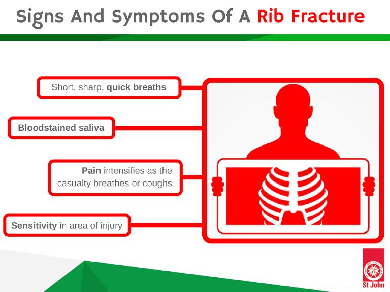Rib fractures are painful and breathing will become difficult for the casualty. If you witness someone endure a high impact to the chest or ribs and they then begin to make a heavy, wheezing sound it is likely they have fractured their ribcage. Advise the casualty to take short breaths as deep or normal breaths will inflict more pain.