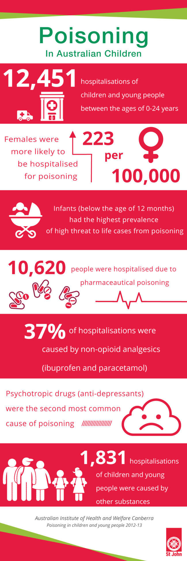 The Poisons Information Centre receives 180,000 calls a year and half are related to incidents involving kids. More than 30 per cent of hospitalisations due to poisoning throughout 2012-13 involved children and young people between the ages of 0-24 years.