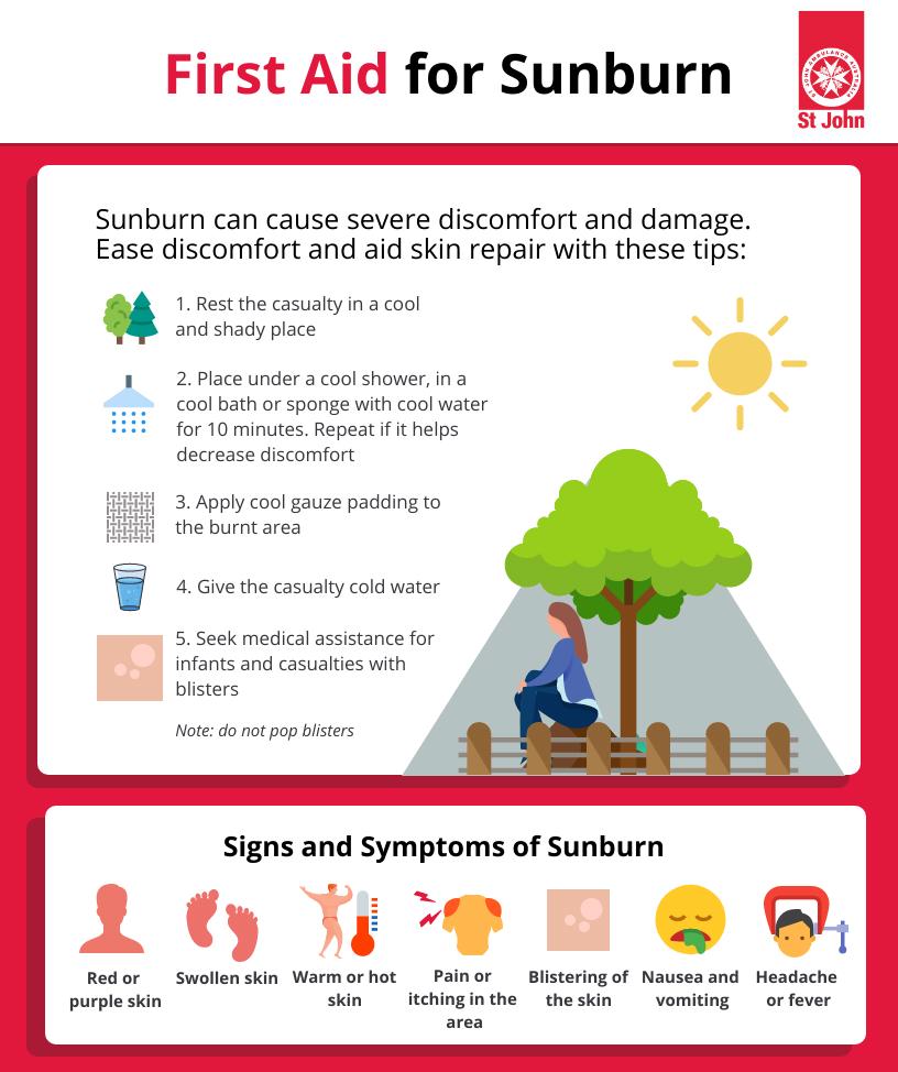 As we are living in a high-risk country for sunburn, knowing how to provide first aid for sunburn is a critical and practical skill to have. The ability to decrease discomfort and short-term damage can have a considerable impact for the person suffering.